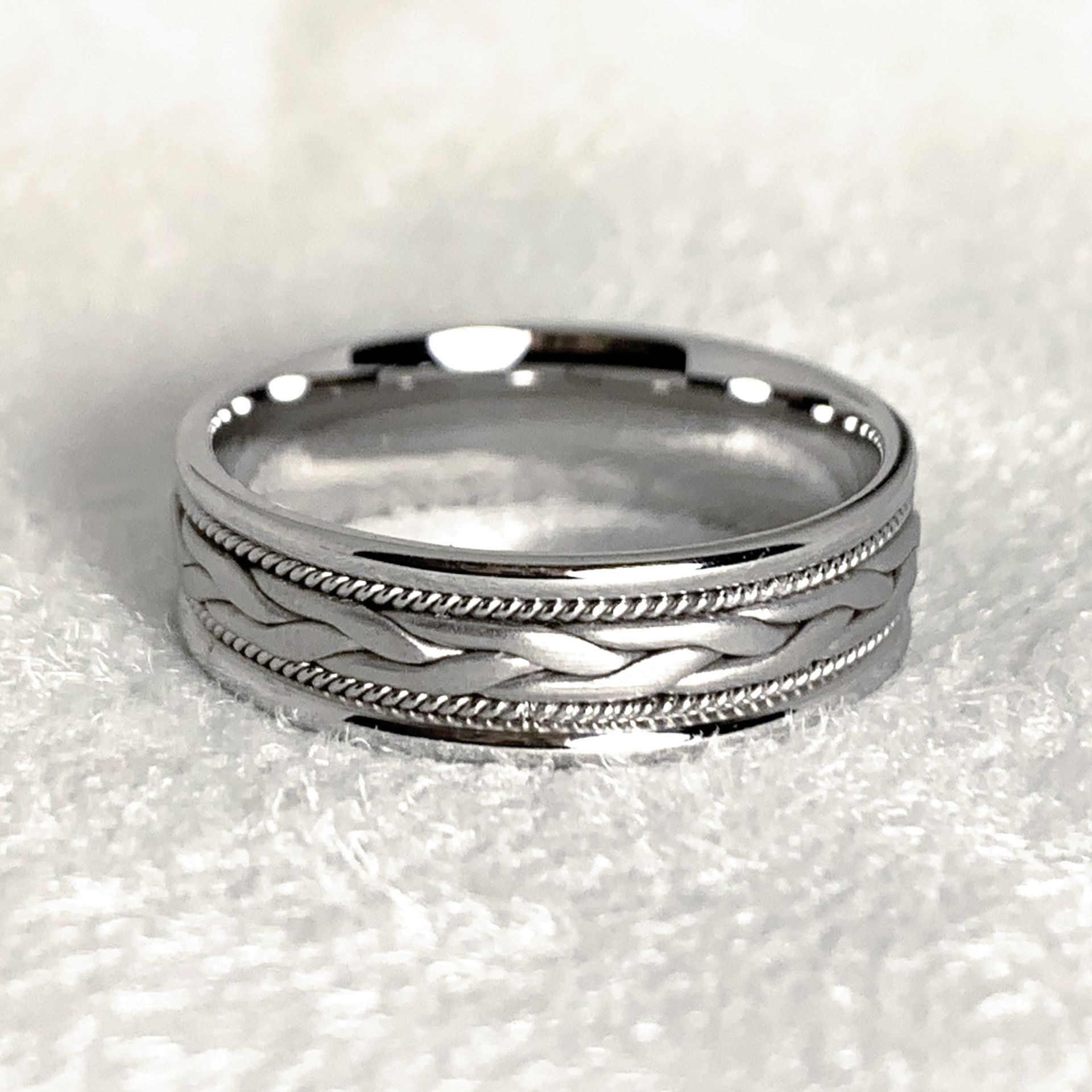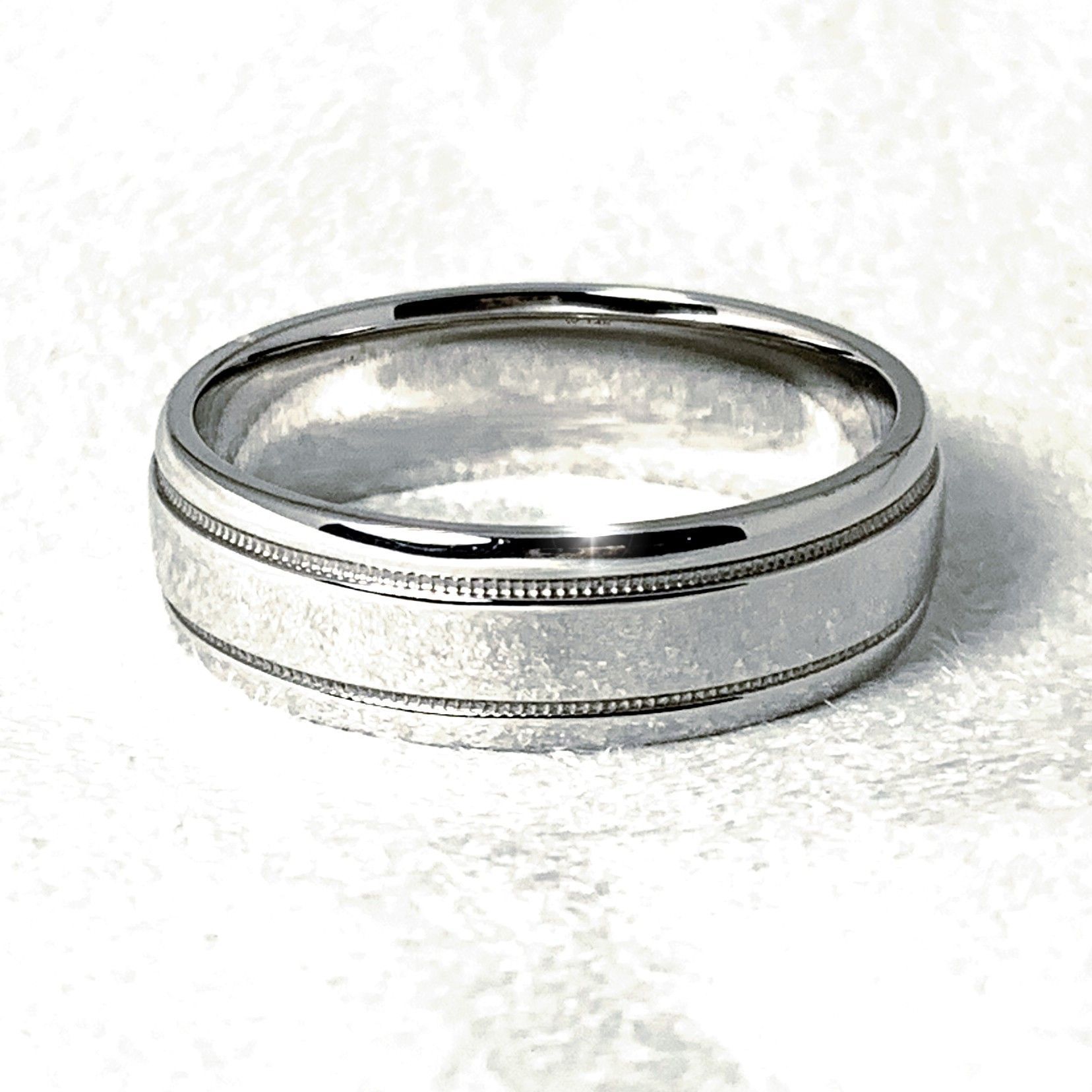 14K White Gold Wedding Band with 2-Row Millgrained & Diamond Cut Motif